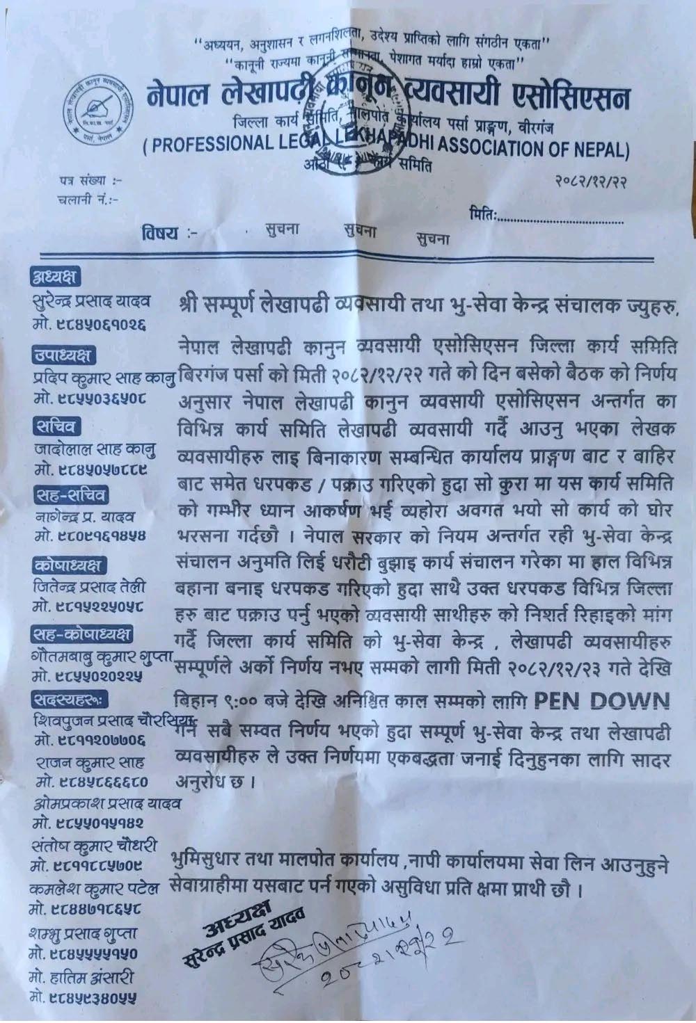 काठमाडौँ, २३ चैतः राष्ट्रिय सतर्कता केन्द्रले सरकारको शासकीय सुधारसम्बन्धी योजनाअनुसार सार्वजनिक सेवा प्रवाह भए/नभएकाबारे छड्के गर्न राजधानीबाहिर टोली खटाएको छ । आजदेखि लागू भएको परिमार्जित कार्यालय समयको परिपालना र सेवा प्रवाहलाई चुस्त तुल्याउने उद्देश्यका साथ केन्द्रले काठमाडौँ उपत्यकाबाहिर नौ जिल्लामा टोली खटाएको प्रवक्ता नारायणप्रसाद भट्टले राससलाई जानकारी दिनुभयो ।